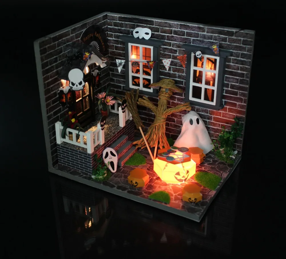 Happy Calabaza De Halloween Theme Diy Casa De Munecas De Madera 3d Luces Miniatura Cubierta De Polvo Muebles Modelo De Construccion Hogar Y Decoracion Tienda House Decor Pictures Decorative House Lettershouse Letter